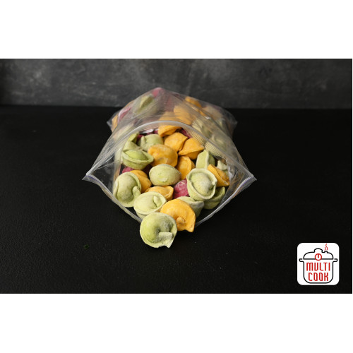 These children’s chicken pelmeni are created specially with kids in mind. The dumplings are made from premium wheat flour and colored with natural beet, carrot and spinach juices, giving the dough a bright, playful look that attracts children without artificial colors.