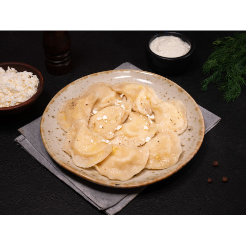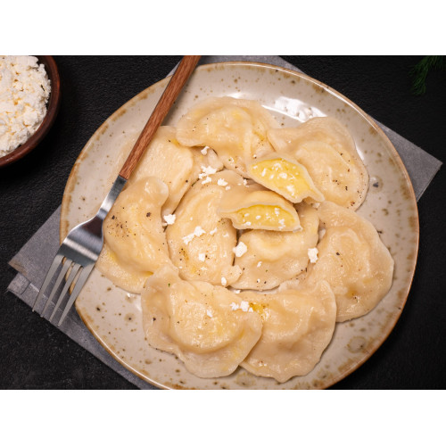 Potato and Cheese Pierogy (Varenyky) are classic Ukrainian dumplings with a soft, comforting filling and delicate dough. The dough is made from premium wheat flour, drinking water and refined sunflower oil, so it stays tender and elastic after cooking.